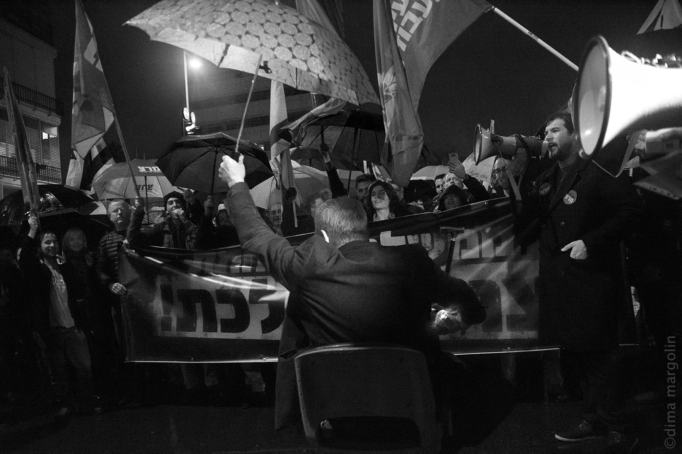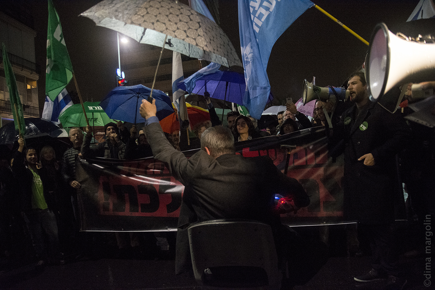באותו זמן המיעוט של מדינה מושחתת של עם שנתן להשמיד את עצמו כמה פעמים, צעד תחת מטריות בתל אביב, כאשר בחזות הצועדים הלך עם חיוך חבר הכנסת שהיה בזיון כשר הבטחון ולטעמים פוליטים גרם נזק בילתי הפיך לכלכלת ישראל דרך השבתות משק בילתי פוסקות שלא עזרו לאף שובת איך עזרו לו אישית להתקבל לכסנת.